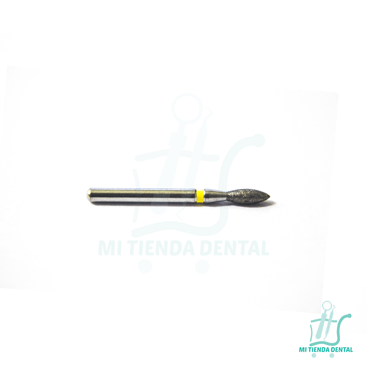 Fresa de diamante sinterizado que sirve para dar anatomía en la cerámica o para hacer pequeños desgastes alrededor de la cofia y el póntico de puentes de metal.