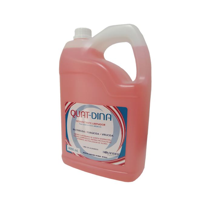 INDICACIONES: Aplique generosamente QUAT-DINA sin diluir en un paño o compresa limpia. Pase uniformemente y de manera unidireccional sobre el área a desinfectar. Deje actuar por 5 minutos. Seque con un paño absorbente el exceso. No necesita enjuague.